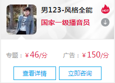 擅长录制品牌广告、大气专题片、动画角色、电视购物、模仿能力强,对声音把控非常不错。