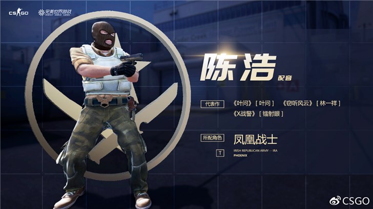 在CS:GO中,陈浩老师为凤凰战士mobile365官方网站立即加入_365足彩推荐_365防伪查询系统 。原版语音较为低沉、凶狠,用语有时还比较情绪化,这里陈浩拿捏的恰到好处。未来国服玩家在死城之谜、古堡激战、死亡游乐园、核子危机做T的时候,别忘了听陈浩老师一展歌喉哈~
